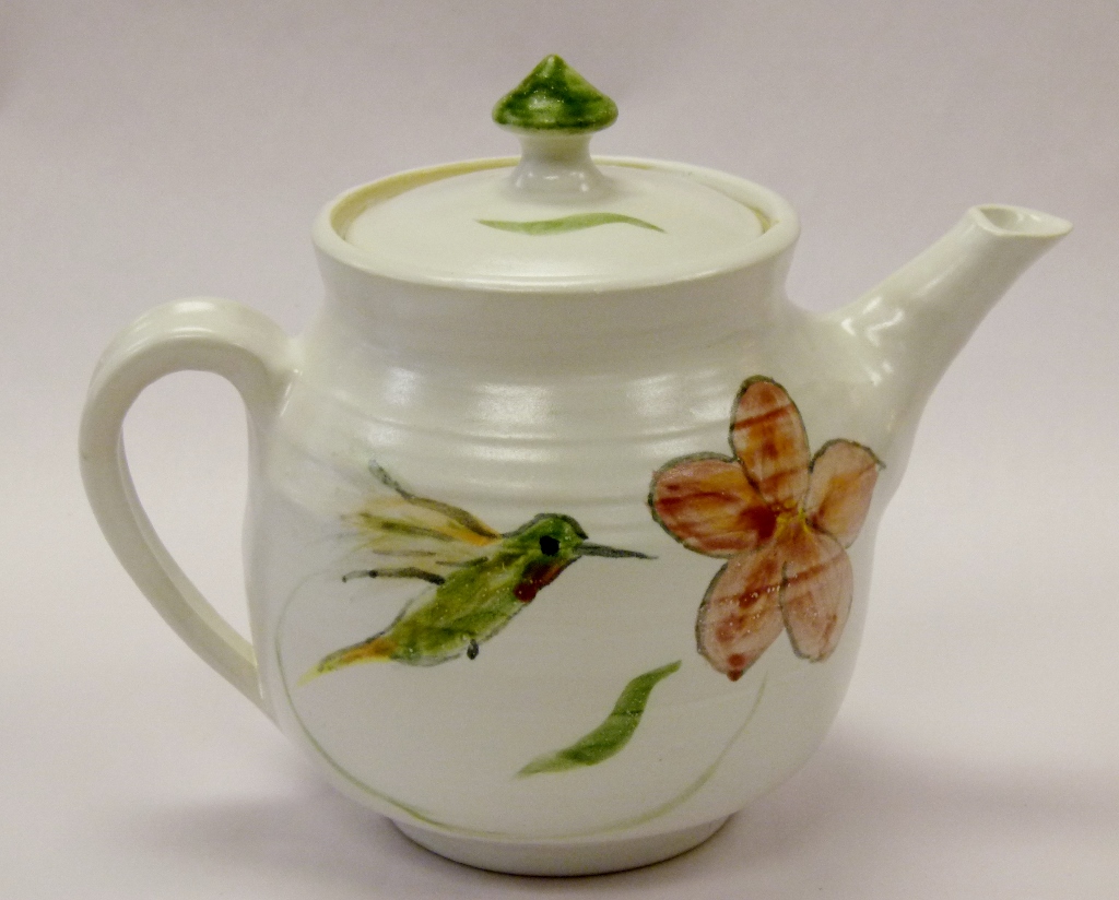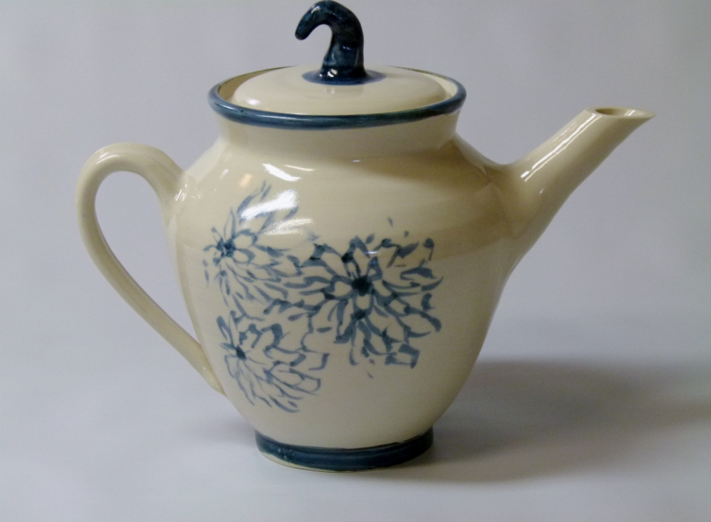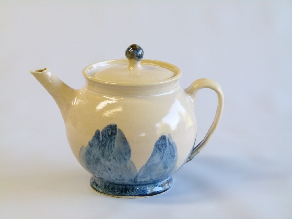 Teapots take great skill and care to ensure they work properly. The lid must have a deep flange so it doesn’t fall out during pouring, the handle must be large enough to avoid knuckles getting burnt and the spout must pour properly with no dribbles. Balance and grace are necessary for a well functioning teapot. It is the most challenging of all pottery forms, and a delight to accomplish!